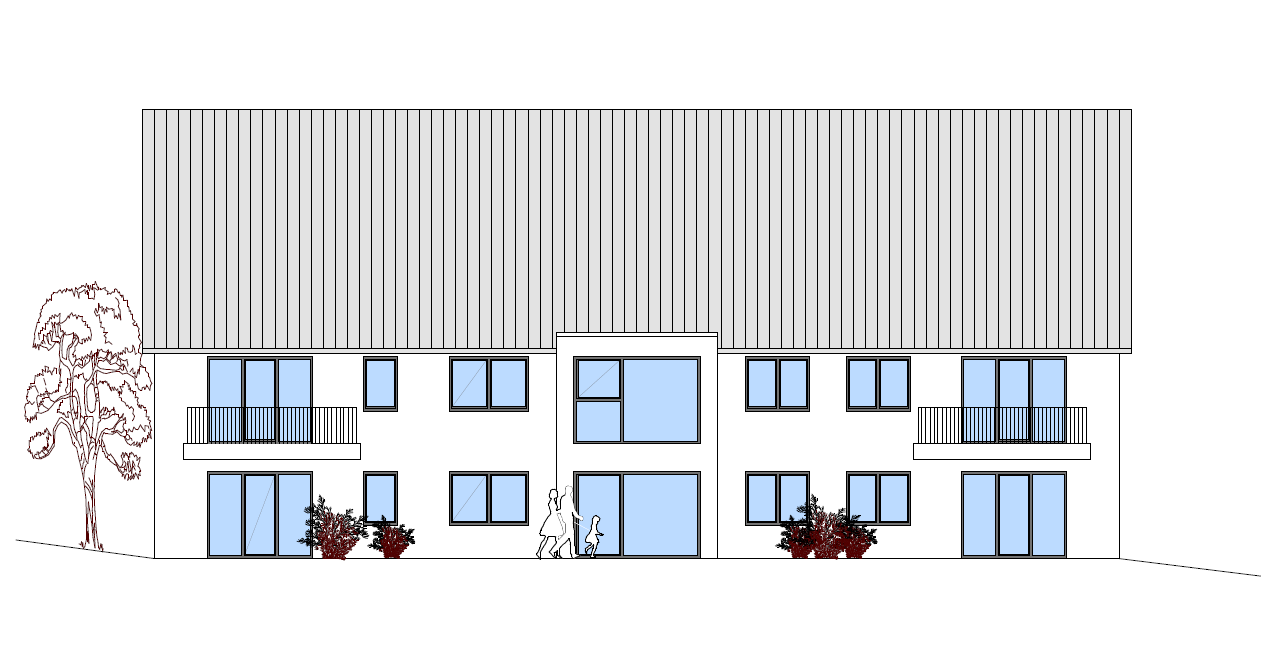 Auf einer Gesamtwohnfläche von 1.279 m² entstehen zwei moderne Mehrfamilienhäuser mit insgesamt 16 öffentlich geförderten Wohnungen.