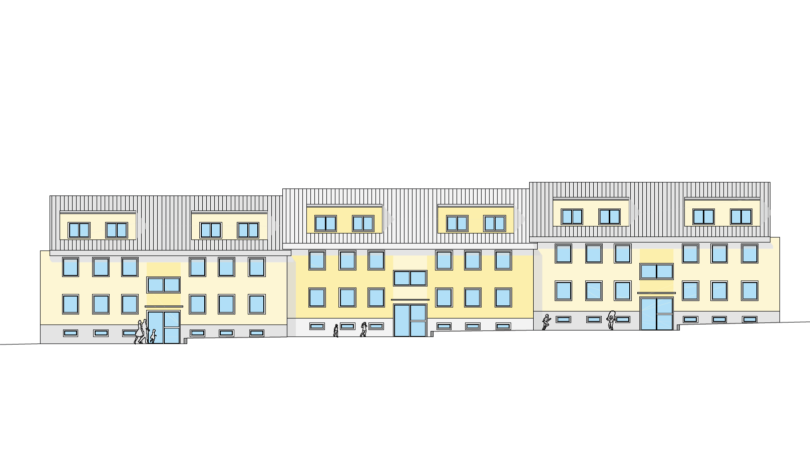 Durch den Ausbau von jeweils zwei Wohnungen pro Gebäude entstehen insgesamt 12 zusätzliche, öffentlich geförderte Wohneinheiten mit insgesamt rund 660 m² neuer Wohnfläche.
